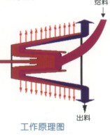 物料經(jīng)掛有搪瓷的給料管及篩座進入篩藍的底部,篩藍內(nèi)的物料受離心力作用緊貼篩面,在振動力作用下,料層均勻地向篩藍大端移動,脫水后的物料從篩藍四周甩出,落入機殼下部的排料口。向下排出。物料中的水分,在離心力作用下透過料層和篩縫,甩向機殼四周,沿殼體壁流向排水口排出。